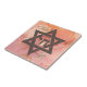 The rustic ceramic tile features a Star of David with the Hebrew word "chai", meaning "life". The metal ornament and marble stone effects are digitally created. The stunning coaster or trivet also adds an elegant touch as a decorative display piece in any room.