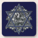 Elegant Star of David with traditional blue and white hexagram symbol complimented with an ornate baroque flourish of silver background. Art of Margaret Loftin Whiting.