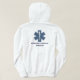 Hoodie displays Star of Life on front left. On the back of the hoodie, a large Star of Life and "EMERGENCY MEDICAL SERVICES". Can be worn at work, on your day off, as pyjamas, or even get one for everyone in your family to support you!