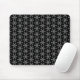 A mouse pad with an attractive pattern made up of a star or snowflake asterisk type motif.
