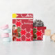 Fun bright Christmas family photos wrapping gift paper in shades of red, yellow and white. Customise with your own three special family photos, family name or message. Currently reads  Merry Christmas from the Rodríguez Family. Uniquely designed by Sarah Trett.