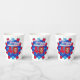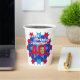 Personalise these bright 40th birthday party paper cups with your own birthday name and photograph in the 0 of 40 on both sides one for your photo now and one from your past. Fun star pattern and text and personalised photo design in bright red, cyan and royal blue. Ideal for using at a sixtieth birthday party. Other matching items and colour options are available. © Original graphic art and design by Sarah Trett for www.mylittleeden.com
