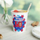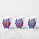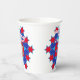 Personalise these bright 50th birthday party paper cups with your own birthday name and photograph in the 0 of 50 on both sides one for your photo now and one from your past. Fun star pattern and text and personalised photo design in bright red, cyan and royal blue. Ideal for using at a fiftieth birthday party. Other matching items and colour options are available. © Original graphic art and design by Sarah Trett for www.mylittleeden.com
