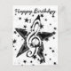 Black clef note surrounded by black and white stars.