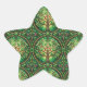 Star-shaped sticker featuring green and gold ornate leaf patterns in circular designs. The image displays both a single sticker and a sheet of 20.