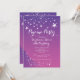 Cute pajama party invitation for tween girls features a purple background with white star burst. Our popular slumber party birthday invite is available in our shop in a varies stylish colour choices.