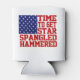 Funny patriotic can cooler says in red letters TIME TO GET STAR SPANGLED HAMMERED.  Makes a Great Gift!  Put a SMILE on someones face.