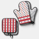 A Red White And Blue Oven Mitt And Pot Holder Set For Patriotic Holidays