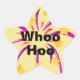 Teachers, parents, or anyone who wants to encourage someone. The star sticker with the words Whoo Hoo and a graphic is a starburst in red, yellow, and purple.