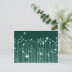 A postcard with a 3d rendered image depicting a forest of fibre optic cable like lines with star like ends.