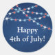 These patriotic stickers are cool for a 4th of July, Memorial Day or Labour Day party. The design is cool with red, white and blue stars on string lights. The background is a textured dark blue. What stickers for you to use as party favours or decorations!