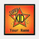 A graphic shinning star by artist/designer Charmaine Paulson on a magnet. The magnet has the text "Super Kid" and text templates for your personalisation.