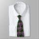 This tie features a repeating pattern of a lovely little wildflower with many names including knapweed, star thistle and centaurea. It begins blooming in the middle of the summer and continues sporadically right into autumn. The wavy petals vary in color from pink to light purple. The blossoms are set against a dark green background.