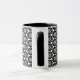A mug with an attractive retro pattern made up of an abstract geometric star, wheel or segmented citrus fruit like motif.
