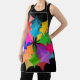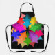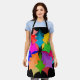 This apron has a mid-century modern design of a wreath made up of stars in shades of red, orange, yellow, green, blue, and purple.