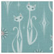 My original vector illustration of mid century inspired cats, with starbursts and diamonds, in shades of blue, with hints of pink and aged black.