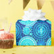 Starbursts and pinwheels, cobalt blue and aqua wrapping paper