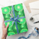 Digitally generated fractal starburst and pinwheel graphic in shades of pale mint to leaf green, accented with white, on a dark pine green background