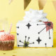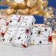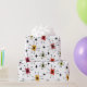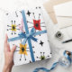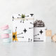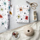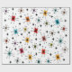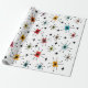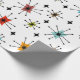 This wrapping paper has a mid-century modern design of starbursts in retro colors and stars.