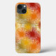 This phone case has a Boho design of starbursts in gamboge (gold), red, berry, and green.