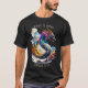 I give wanted to give this a 4 instead of a 5 because these Basic DARK T0shirts run unexpectedly SLIM or Narrow. Which is great if you do not have a potbelly, but I have a paunch. It isn't the shirt's fault that I've got a beer belly. The design and shirt itself is a quality cotton shirt. The color is more of a deep purple, but still a very pretty color. The Basic DARK T-shirts run a bit SLIMMER than the Basic Ts. The neck is a fraction narrower (or seems to be narrower) also. I'm a paunchy middle-aged woman and my neck is 12 inches (31cm) thick and the neckline fell about the same as in the photo of the man, and I had the desire to tug it a bit. So if you're a thick necked man or like loose shirts, be aware these are slimmer shirts. Once I get rid of my lockdown paunch it'll look great. The shirt washed well in cold water with no apparent bleeding. We don't have a dryer, so it hung dry. Did not shrink. Love the colors and the design. The design looks smaller on my shirt than it does on the model on-line. But still, it looks good on the shirt. The printing looks as it does on the model, just the size seems fractionally smaller. Washed garment in cold water, hung dry and design appeared unaffected.
