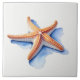Starfish and Blue Silhouette Tile