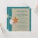 Pretty Starfish and the look of burlap over an ocean teal colour on this sweet beach themed shower invitation. Change text for any occasion. This invitation is totally printed. There is are no real starfish, sand dollars or burlap attached.