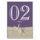 Starfish and burlap printed table number card to compliment our Beach Amore' invitation set in Purple, can be personalised and ordered individually. All parts of this card are printed. There is no real burlap or shells attached.