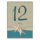 Starfish and burlap printed table number card to compliment our Beach Amore' invitation set in Ocean Teal, can be personalised and ordered individually. All parts of this card are printed. There is no real burlap or starfish attached.