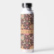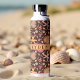 A gorgeous water bottle that has a hand-drawn pattern of flowers and starfish scattered across and chocolate brown background. The name area is fully customisable, making it a one-of-a-kind perfect for gifting or treating yourself to something special. Add your name, pick your favourite font, and stand out from the crowd.