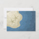 A beach and ocean theme table seating number card featuring a sandy shore with starfish. Ocean waves of blue... Customise by adding different table numbers as desired.