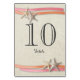 Pretty coral and pink ribbon and starfish table number card to compliment our beach theme invitation set, can be personalised and ordered individually.