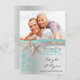 Silver and aqua starfish and ribbon beach theme save the date card with photo. Personalise text as preferred.