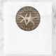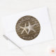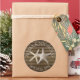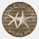 Old Boat Wood Planks and Starfish rustic beach wedding favour sticker with bride and groom's names and wedding date.
