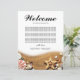 Beach destination welcome wedding letter featuring a simple white background, sandy beach with a starfish and seashells.