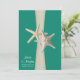 Pretty starfish and burlap design create a unique look for your beach or destination wedding. Pretty Ocean green and natural ivory colours offer a unique look. This invitation is entirely printed. There is no real burlap or starfish attached.