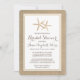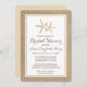 This simple beach wedding bridal shower invitation features a rustic burlap look background bordered in your wedding colour. The focal point of the invitation is a pair of elegant starfish. Custom colours available upon request.