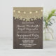 Starfish Rustic Lights + Burlap Beach Engagement Party Invitations - features a burlap and rustic wood background with string lights and starfish. See the full matching collection in this design on this page.