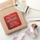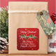 Starfish Christmas return address envelope seals.  Twinkling stars red stickers, in square shape, with starfish and holly design.  White, modern text is customisable in two places for a greeting, “Merry Christmas” and name and address.  Large size sticker is shown with smaller option.