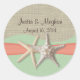 Starfish and burap look sticker in shell coral. Change text to suit your needs. Matches our "Beach Amore Starfish" wedding design, invitations.