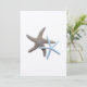 White beach themed wedding invitations with sea stars design. Wording has the parents of both the bride and groom inviting guests. Two little starfish decorate the lower corner and the invitations are shown on an upgraded felt paper, which you may change. A simple, yet lovely, invitation for a large or small ceremony by the sea.