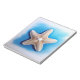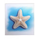 An illustration of an orange starfish with a blue sketch background. Crayon drawing.