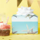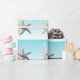 Three starfish on blue, beach themed wrapping paper for birthday or wedding. Order any type and size roll of gift wrap.