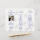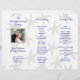 Photo wedding program to fold into thirds. Accordion fold with starfish pattern background and indigo blue text. Customise in three sections with photo of the couple on the front panel. The back of this paper will not have the pattern and will be solid white.