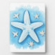 An illustration of a beautiful starfish with a bluish background. The starfish looks like it is underwater in this illustration.