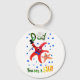 A keychain with a handpainted paper collage design of a dancing starfish and a young starfish saying, 'Dad, You are a Star!' Suitable for Father's Day or a father's birthday. See also matching greeting card, gifts and apparel.