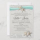 Grey and aqua beach wedding invitation with romantic lace, starfish and aqua ribbon design. Change typography style text as preferred.
