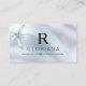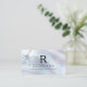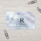 Created for artisans and jewellery designers, the text of our nautical beach jewellery design business card is set on a painted mother of pearl background in shades of blue, mauve, and white. The unique monogram logo adds a modern look for your design business. The large serif monogram initial can represent your first or last name. In this example, we've used it for the surname. Your first name is presented in an elegant sans serif font in capital letters, with custom spacing. Beneath is your business name in capital letters... and a subtly coloured grey-blue starfish to match the designs on your jewellery display cards. The back of the card holds the pertinent details your customers will need for contacting you. All text on front and back can be easily revised on the personalisation template.