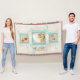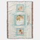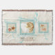 COLOR PALETTE: aqua ocean turquoise blue, sand tan and cream DESIGN COLLECTION: Personalised with "Welcome" or your own message and family name. This design is created from original watercolor illustration artwork by Audrey Jeanne Roberts. A beautiful and intricate trio of three different types of starfish shells interior with it's almost iridescent glow capture in delicate paint layers is laid over a hand painted greek key border in beautiful nautical blues and in the background is a very subtle, tone on tone damask pattern with swirling scrolls. It makes for a very modern, elegant, upscale designed throw blanket for a beautiful interior design decor.