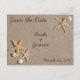 Beach theme save the date postcards with starfish and seashells in the sand! Easy to use template - just add the names of the Bride & Groom, along with the wedding date in the space provided.